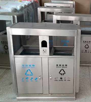 地鐵不銹鋼分類垃圾桶工廠批量生產(chǎn)圖