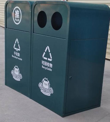 湖北黃石兒童公園鋼制烤漆分類垃圾桶美觀耐用