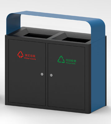 桶頭高低傾斜設(shè)計美觀大方,桶身采用黑色烤漆工藝,桶框采用藍色烤漆工藝,斜切投口垃圾投放更徹底,絲印垃圾分類標識從源頭規(guī)范垃圾分類精準投放。