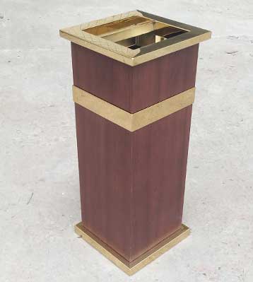 • 產(chǎn)品材質(zhì):酒店鈦金垃圾桶采用不銹鋼鋼板拉絲咖啡色或玫瑰金制作而成,另產(chǎn)品可做四面大理石用鋼板螺絲固定于桶體,有內(nèi)桶,方便提倒垃圾,桶頭煙灰盅可放白石子可清洗,鋼板經(jīng)折彎沖壓一次性成型。產(chǎn)品一律用室外粉靜電噴塑,經(jīng)過180°的高溫,延長垃圾桶使用壽命,顏色持久不變亮麗如新。