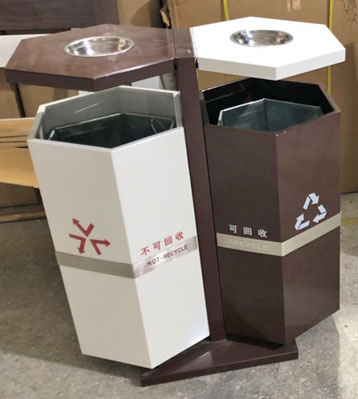欣方圳六角鋼制分類垃圾桶批量生產(chǎn)圖