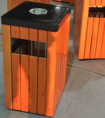 戶外鋼木單桶垃圾桶生產(chǎn)成品擺放圖