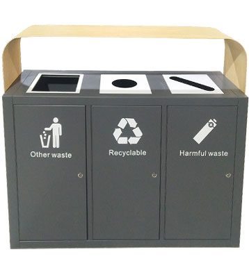 • 產(chǎn)品名稱:三分類仿木紋鋼制烤漆垃圾桶
