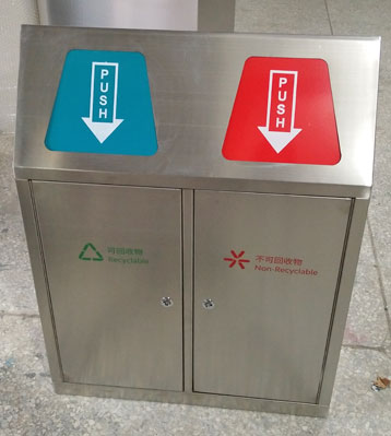 • 使用范圍:不銹鋼推蓋式果皮箱表面光滑、亮麗,是電梯口、寫字樓、學校、物業(yè)、賓館、酒店、機場、汽車站等擺放的首選。