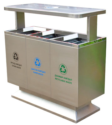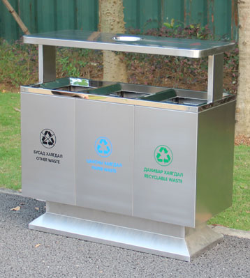 • 產(chǎn)品名稱:不銹鋼戶外三分類果皮箱