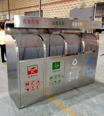 小區(qū)垃圾分類(lèi)站點(diǎn)四類(lèi)垃圾分類(lèi)垃圾桶,不銹鋼無(wú)疑是較為理想的材質(zhì)。它戶(hù)外防銹蝕效果好,表面金屬光澤高檔美觀,污漬也易清理。不銹鋼分類(lèi)桶產(chǎn)...