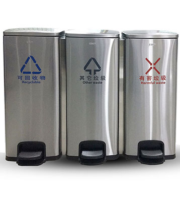 欣方圳90L家用室內(nèi)不銹鋼腳踏三分類垃圾桶批量生產(chǎn)圖