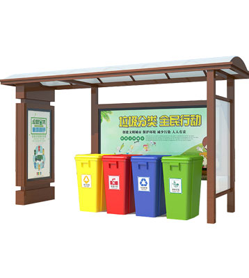 設(shè)有擋雨棚,可配備垃圾箱信息顯示屏、防水照明燈、廣告屏,進(jìn)行地面硬化。對社區(qū)玻金塑紙可回收物,其他垃圾,廚余垃圾,有害垃圾等生活垃圾定時定點投放收集.