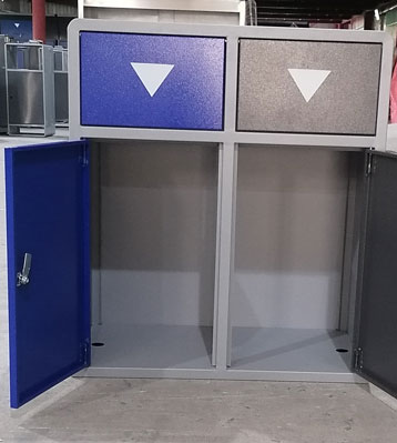 戶外推蓋垃圾桶金屬烤漆密閉分類垃圾箱批量生產(chǎn)圖