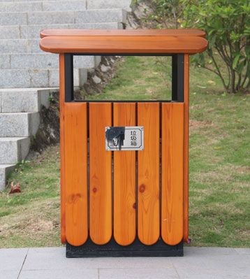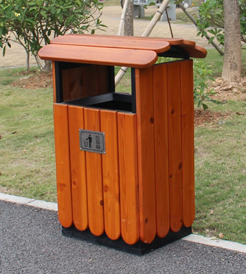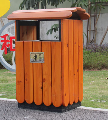 欣方圳木屋鋼木單桶垃圾桶廠家批量生產(chǎn)圖