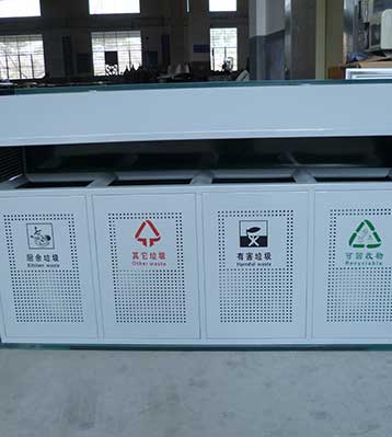 • 產(chǎn)品名稱:戶外鋼板四分類垃圾桶